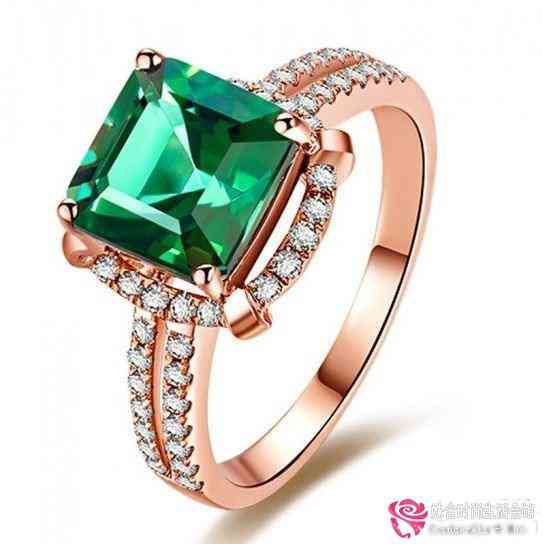 别致的玫瑰金订婚祖母绿戒指