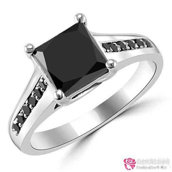 优雅的白金黑钻订婚戒指