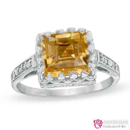 白金黄水晶订婚戒指Zales.com