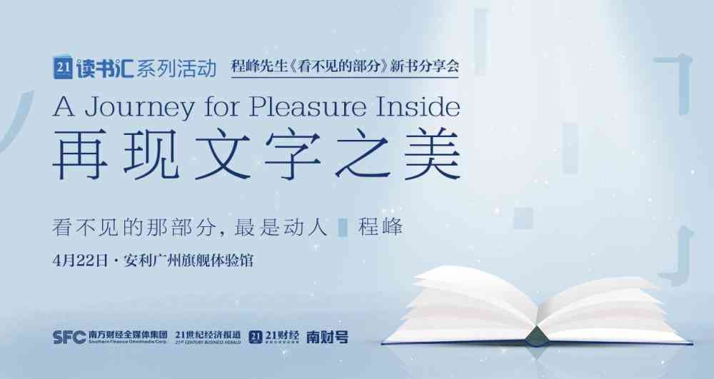 2023年,21世纪经济报道旗下“21读书汇”全新启航!4月22日,“21读书汇”将在广州举办主题为“再现文字之美”的读书会,届时,金融圈里的诗人程峰将和大家分享他的新作品《看不见的部分》。期待广大朋友亲临广州会场,与我们一同品味文字之美。活动名额有限!报名从速!