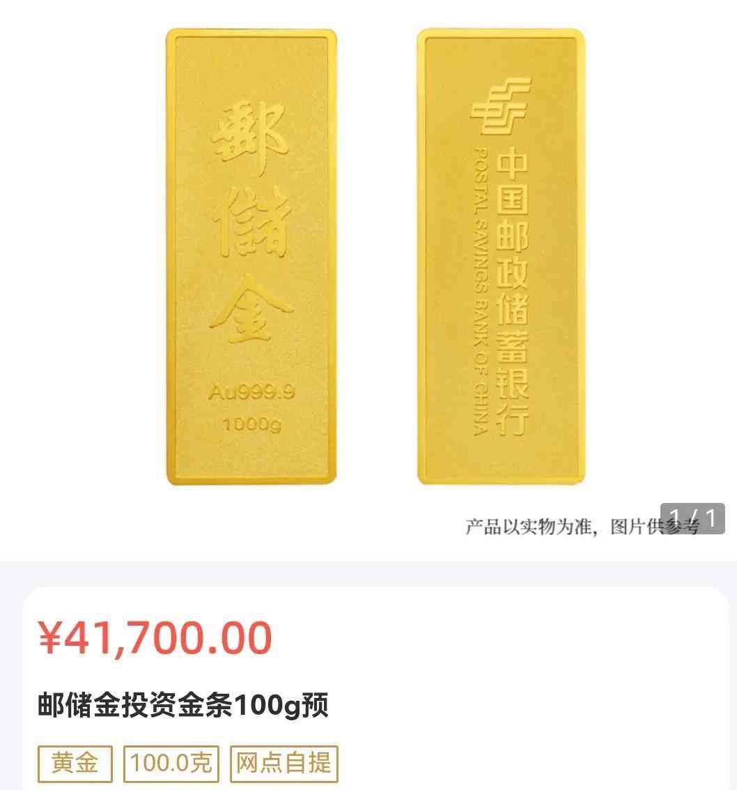 邮政储蓄银行金条价格417元/克。(上海金交所金价+15.5元/克)