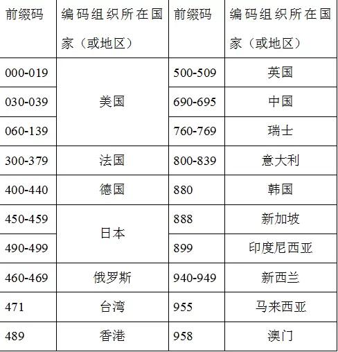 以下提供部分国家的条形码