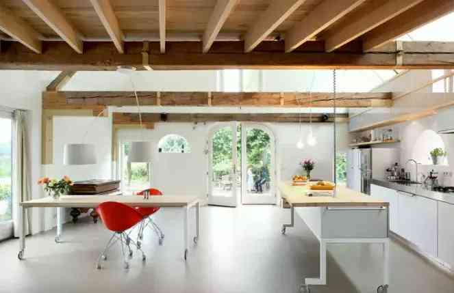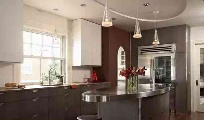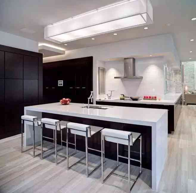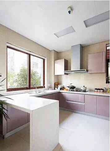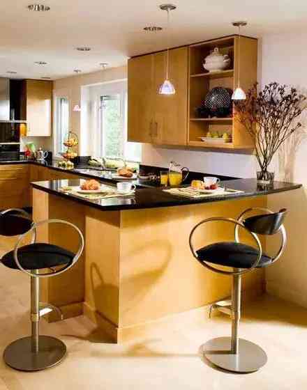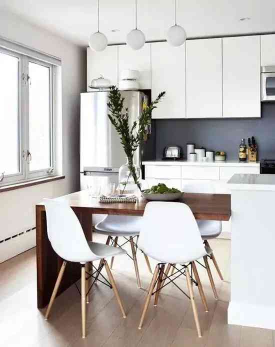 有的厨房实在太小,塞不下一个中岛,人就走不开,这是我们就可以选一个比较折中的半中岛,类似于吧台的存在。它除了比正常的中岛小一些,其余的功能都具备,并且可以与餐桌连在一起,无论是T型还是一字形摆放,都很实用。