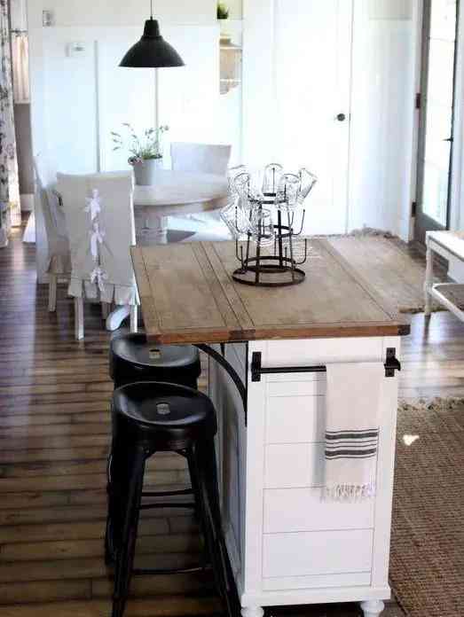 想要这种中岛的小伙伴,可以直接找厂家订制,根据自己的需要加上各种配件,一样实用又好看。预算实在不够,可以再退而求其次,我们可以直接选择小推车作为收纳补充,百元千元可搞定,也是很好的选择。