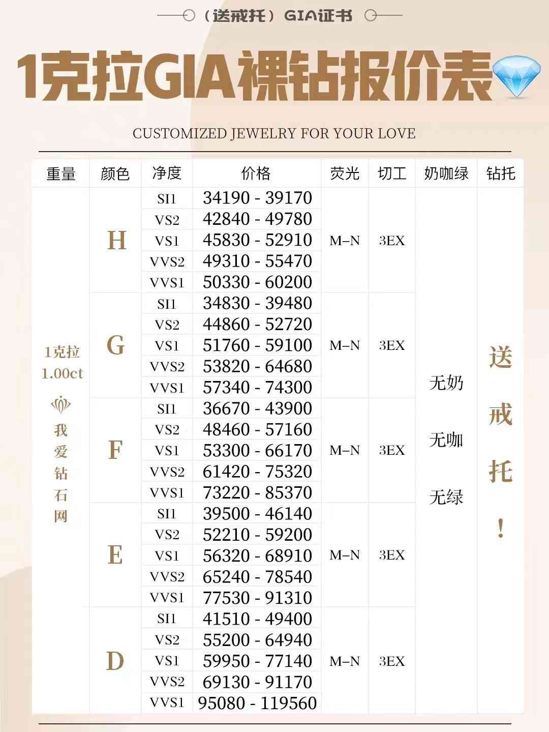 30分-1克拉gia钻石价格表: