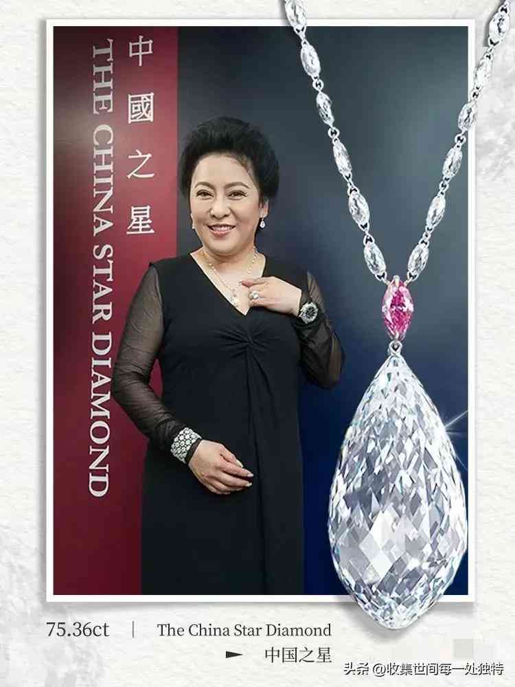 “中国之星”重达75.36克拉,是世界上最大的水滴型琢型钻石,也是世界上颗以中国命名的钻石,在2013年以8611万港币拍下,如今已经价值过亿,向太在极少数场合才会佩戴。