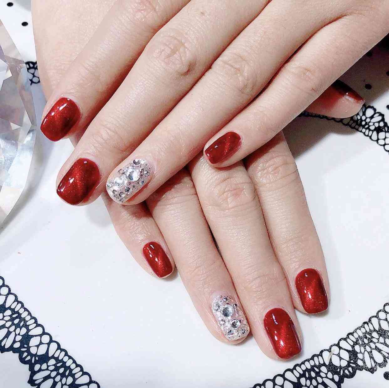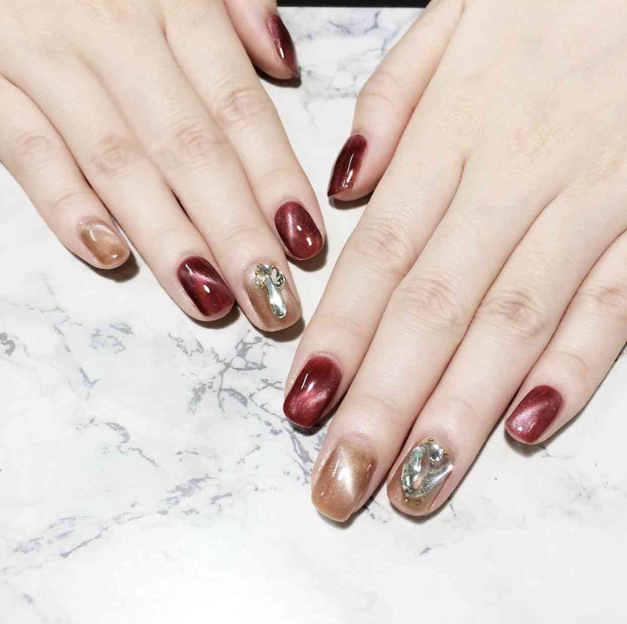 有着高级时髦感的红色猫眼甲,不仅非常性感,也有着非常出色的显白效果,让指尖看起来格外白皙,而且衬得整个的气色都很好。
