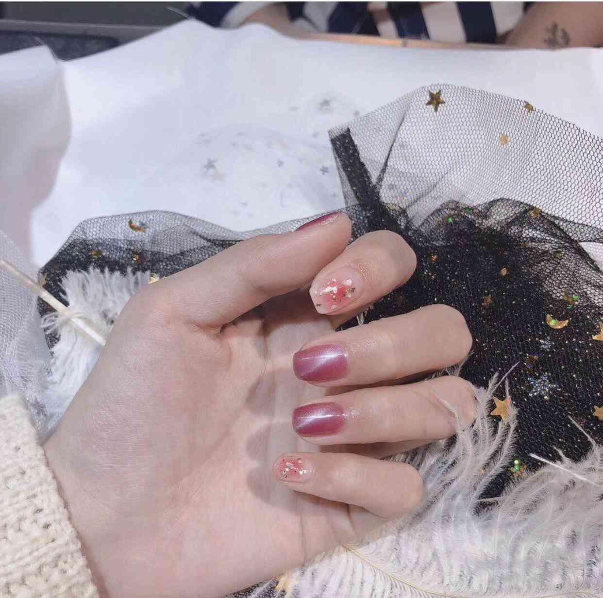 豆沙色其实是非常显白的,尤其是豆沙色的猫眼甲,自带的发光颗粒,让指尖有着更加明亮的光泽感,看起来非常舒服,这样的颜色,不管是上班还是学生党,都很好驾驭。