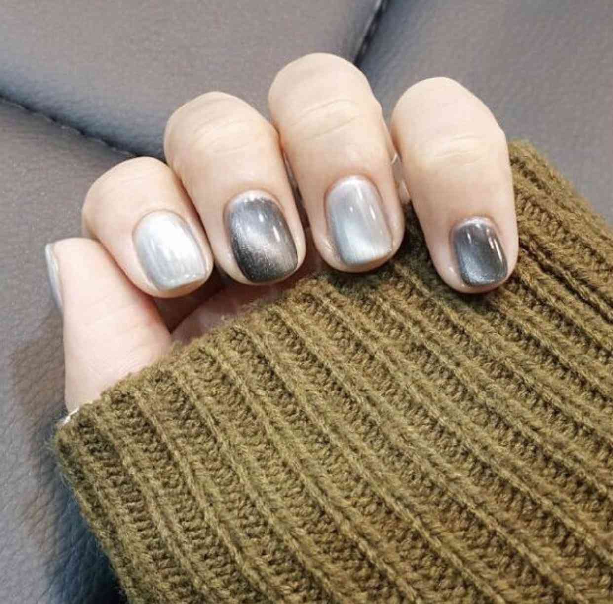 奶奶灰是当下非常流行的颜色,灰色的猫眼甲会比纯色更加精致,这种流动的光泽感,让灰色更有高级感,明暗的对比,会让指尖显得更加抢眼哦~
