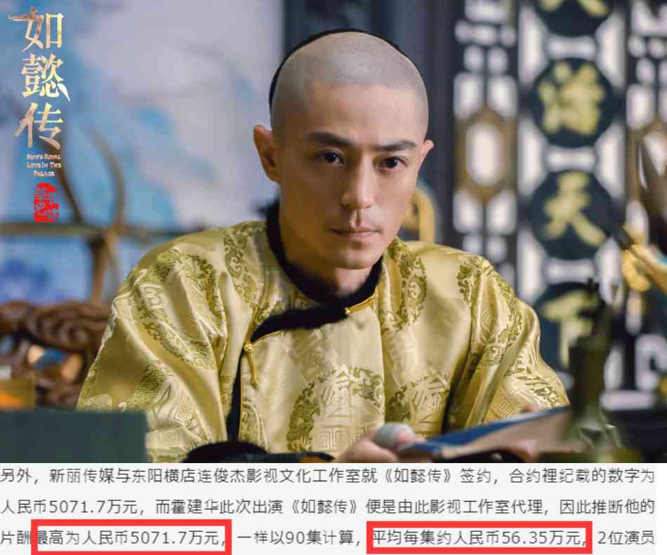 其中尤以《如懿传》的片酬最惊人,据悉单是霍建华一个人就拿走了超过五千万的片酬。
