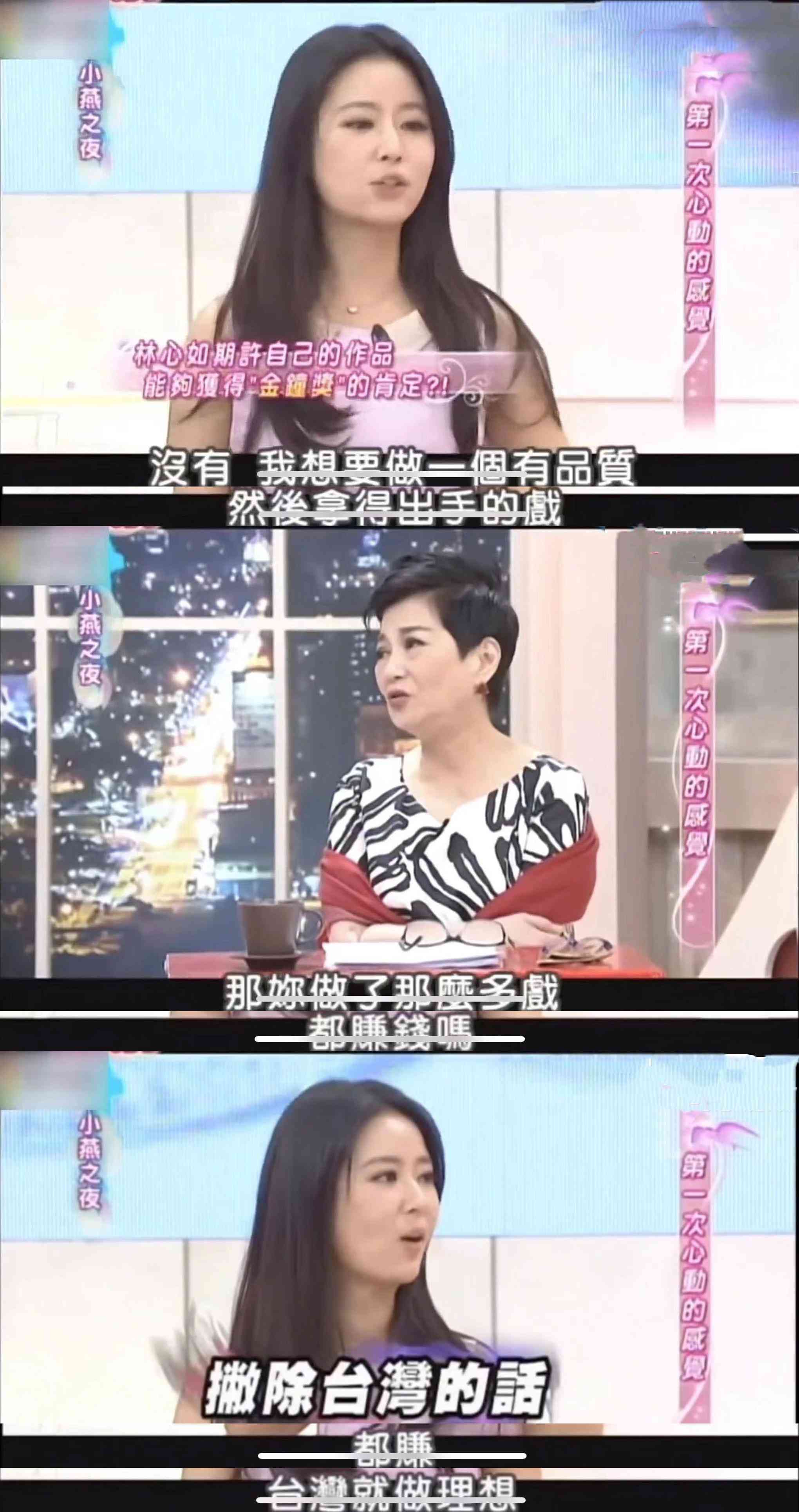 而这也不是林心如次双标了,此前她就在节目中曾说过,自己在内地拍戏是为了赚钱,回到台湾拍戏则是为了理想。