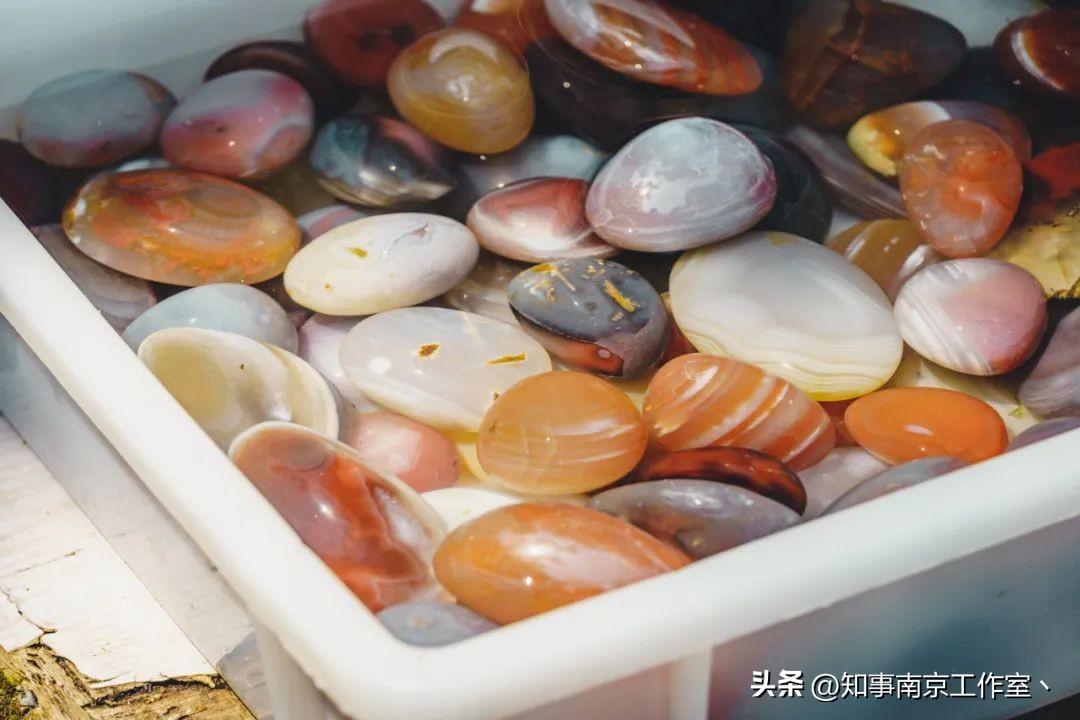 这些“雨花石”大多都产自外地,像这其中的碎玛瑙,很多可能都是从东北阜新啊,内蒙古啊这些地方远道而来,所以同样从这些地方远道而来的游客,如果他们知道自己从南京买回了一些“来自家乡的南京特产”时,不知会作何感想。