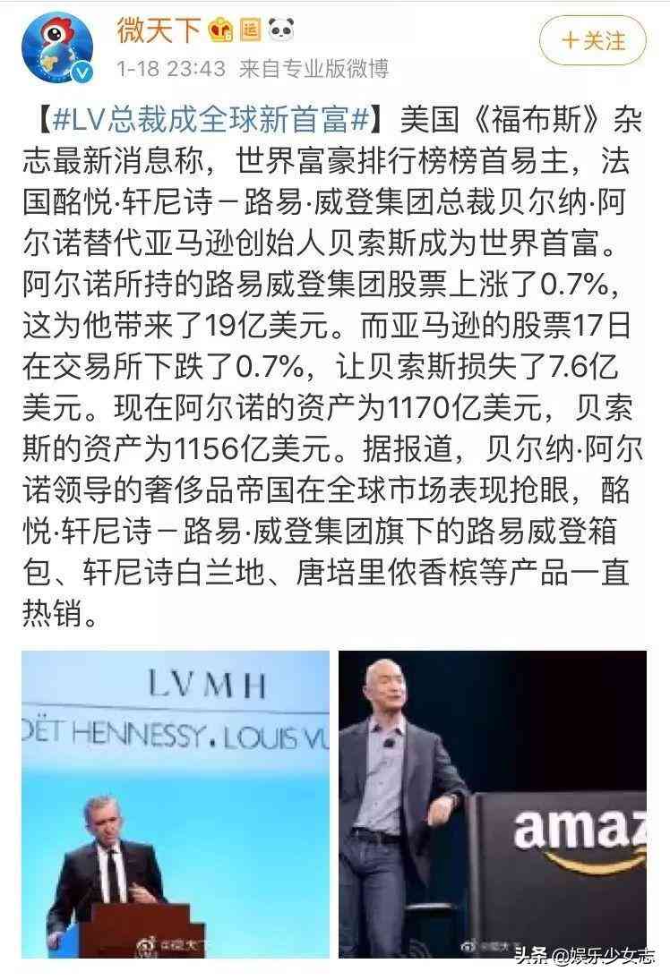 去年1月份,美国《福布斯》杂志消息称,新首富是LV的老板伯纳德·阿尔诺,净资产有1170亿美元~