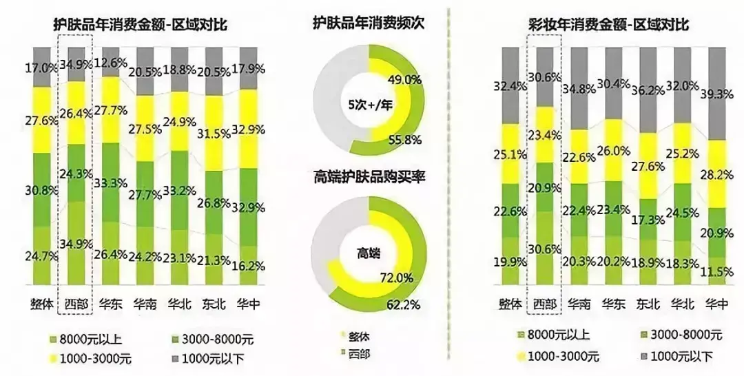 也就是说,越是经济发达地区,女性花在美妆上的消费金额也越高。当然,这对于美妆品牌而言,无疑是一大福音。