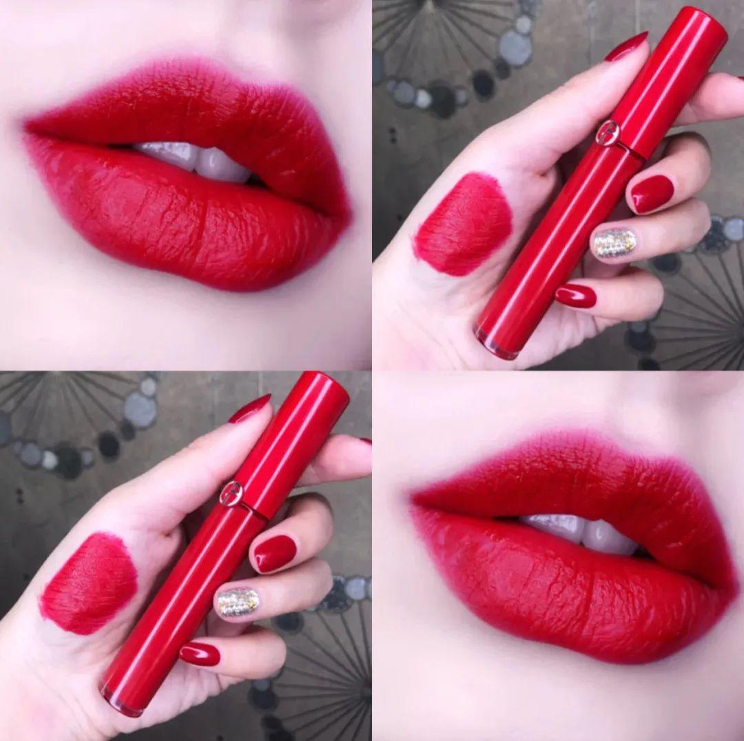 1)蓝调正红色#400这支色号官方叫“亚曼尼定制服”,光听名字就很高级。经典的复古蓝调正红色,涂上气场全开,女明星们走红毯都pick的色号。