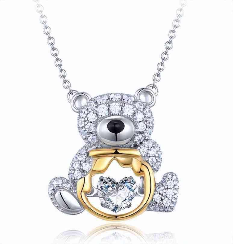 这是一条可爱又萌动的项链,女生肯定都爱的。小熊一向以憨态可人而出名,而喜欢佩戴小熊项链的都是可爱的小女生。浪漫又有一些俏皮是这些小女生的共性,心底的愿望都是不想长大,想继续生活在童话里,想被人呵护,希望每个女生都和小熊一样,永远可爱哦。