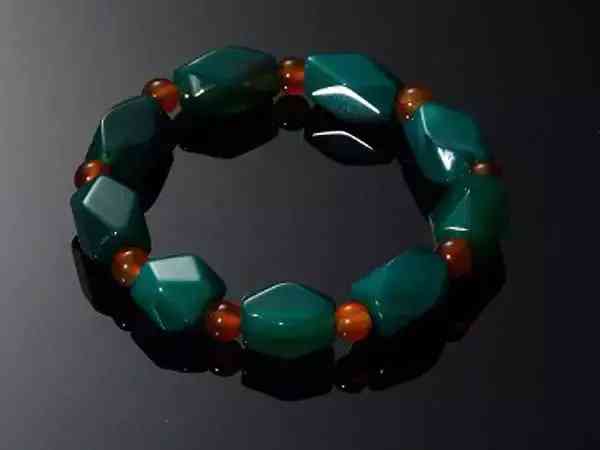 绿色的玛瑙,自然界不见绿玛瑙,目前中国珠宝市场上的绿玛瑙几乎都是人工着色而成,·其色浓绿,有的色似翡翠,但有经验者很易同翡翠区别。绿玛瑙颜色“单薄”,质地无翠性,性脆;翡翠颜色“浑厚”质地有翠性,韧性大。