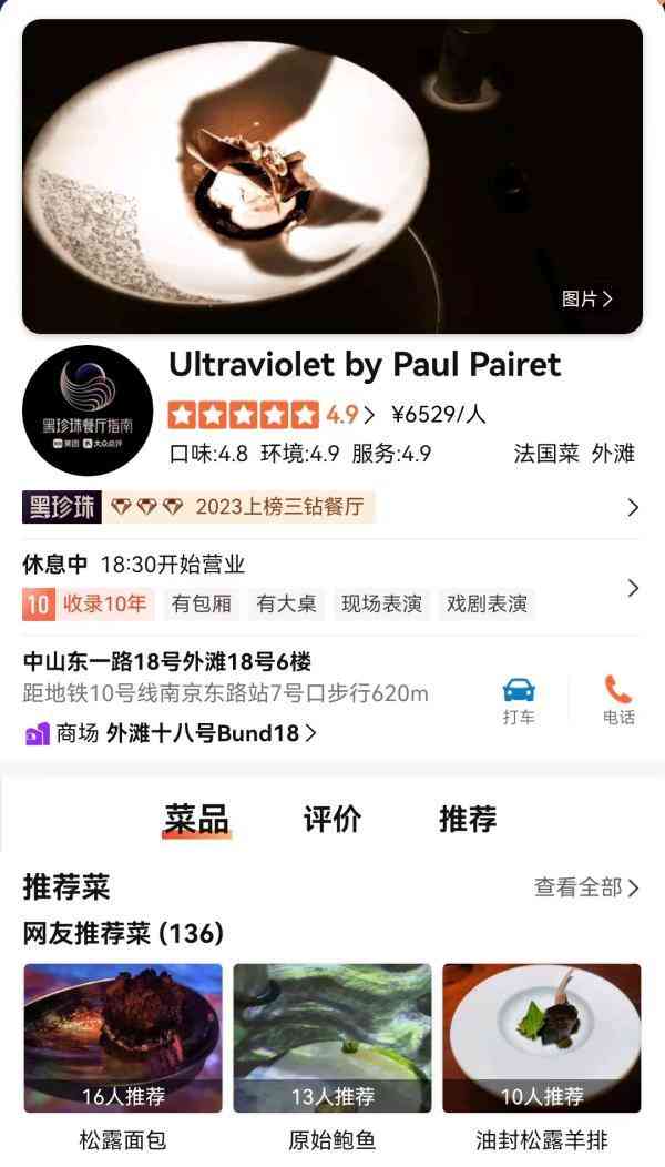此外,根据某点评软件的公开信息,这家餐厅还入选了“中国人自己的美食榜”——黑珍珠餐厅指南的三钻餐厅,也是最高等级的餐厅。