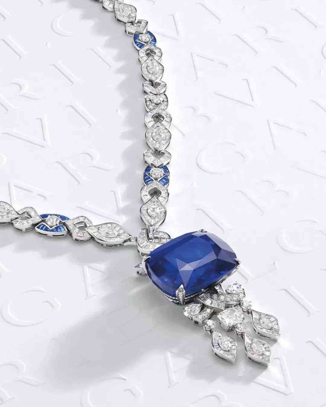 宝格丽 Eden the Garden of Wonders 高级珠宝系列 Mediterranean Reverie 项链 镶嵌着重达 107.15 克拉的皇家蓝蓝宝石