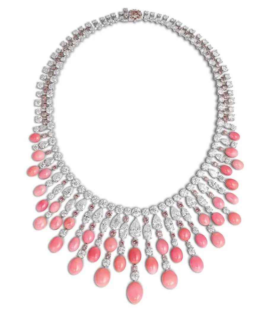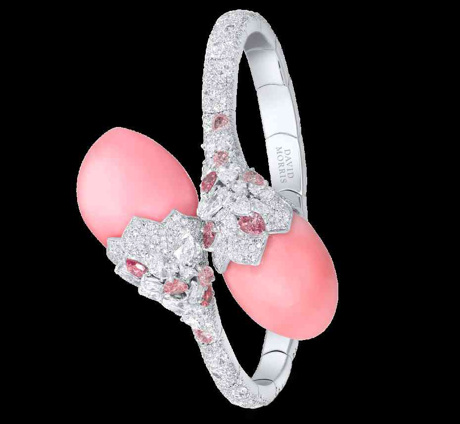 还有一些品牌专攻稀有宝石,他们和特殊宝石的专家保持着长期稳定的联系,比如英国的 David Morris 以海螺珠珠宝闻名,现在的掌舵人 Jeremy Morris 在采访中表示:“在过去的几年里,粉红色的海螺珠已经成为我们的品牌签名风格之一。这些美丽的海螺珠都来自同一位专家,我们多年来一直与她合作。她本能地知道我们对海螺珠的需求,可以帮我们找到最完美的珍珠,这种合作让我们可以创作出最独一无二的海螺珠珠宝。”