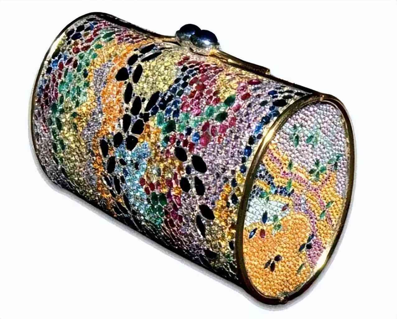 比如 Rosior 的代表作之一 Gem Dream 晚装包,它由 105.80 克传统葡萄牙黄金和 641.90 克纯银制成,上面覆盖着 4,732 颗宝石。包括 1,839 颗蓝色蓝宝石、962 颗彩色蓝宝石、380 颗红宝石、312 颗祖母绿、239 颗紫水晶、206 颗黄玉、186 颗黄水晶、93 颗蓝色黄玉、88 颗烟晶、25 颗海蓝宝石和 402 颗钻石。宝石总重量超过 423 克拉,这数千颗刻面宝石的镶嵌耗时约 900 小时,整件晚装包的手工制作的工时总计近 1,200 小时。