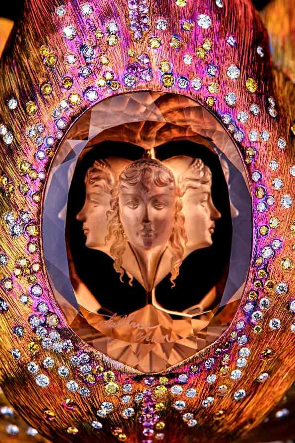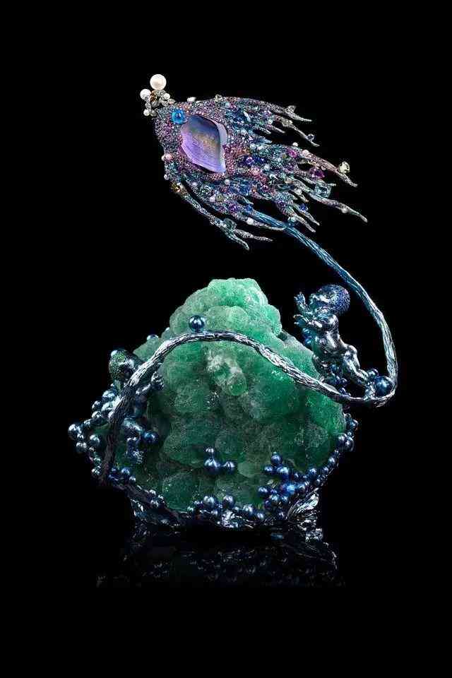 陈世英天马行空的想象力将中国传说转化为璀璨的珠宝,色彩艳丽的宝石组合,充满生命力的造型,独树一帜的精湛工艺,展现了他心目中“可穿戴的雕塑”。所以,大家都会认为他是一位艺术家,而不仅仅是一位珠宝设计师,他的作品也当之无愧地成为公认的艺术珠宝。