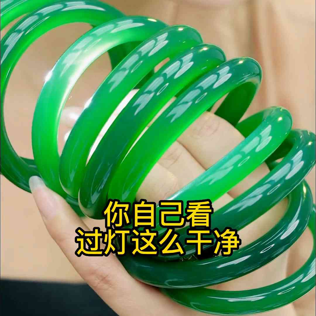 这个镯子是我们家给周大生周大福门店供货的一个手镯。因为这个镯子是高冰满绿的,你记住一句话,但凡跟绿色沾边的珠宝,没有便宜的。我先给你们看一眼细节。很多粉丝最关心的就是打灯。你先来看一下料子,粉丝说了,你灯打的这么亮,你又看不到它正儿八经本身的颜色,我把光给你们遮住,你们自己来看一下它本身的颜色,油亮油亮的。而且这个是胖墩墩的,条宽条厚都是卡到9mm+的。关键是这个料子过灯,你自己来看一眼,看到没有。我爱这款,打灯干干净净,你自己看,过灯这么干净,不是说我给你们做的那种,带黑点带瑕疵带矿点的。这是天然的澳大利亚澳玉。这个玉种非常的贵,就是你们不做珠宝,不了解珠宝的。你们不知道这个玉种,因为这个玉种的原材料很少,明白吗?