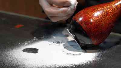 漆器制作过程中,会根据不同的创作要求,在漆中加入颜料、染料、金属材料、镶嵌材料等等。平时用到的工具有刮刀、发刷、画笔、刻刀、调漆板、罗筛、粉筒、喷壶、一次性手套、水磨砂纸、植物油、滑湿粉、其他等等。