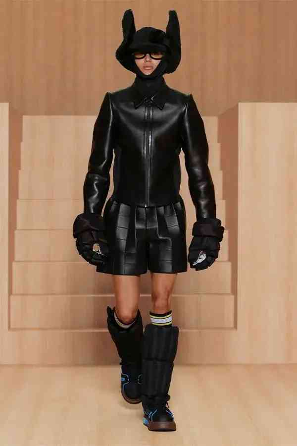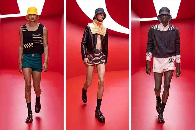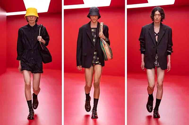 这一季两位设计师重塑了 Prada 往年设计中的元素,比如这个系列最夺人眼球的超短裙裤会让人联想到 2017 春夏女装秀场上相似的设计。