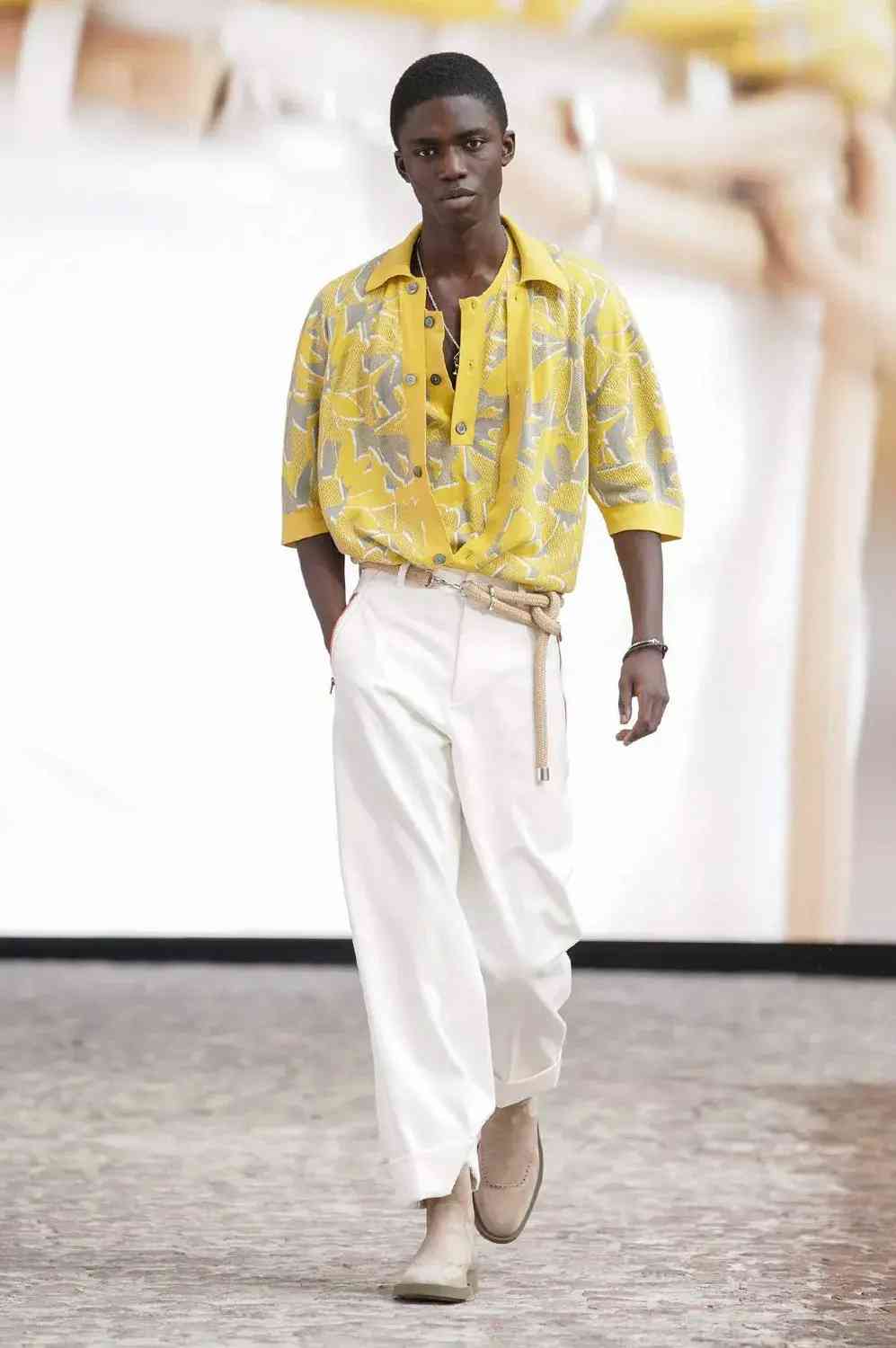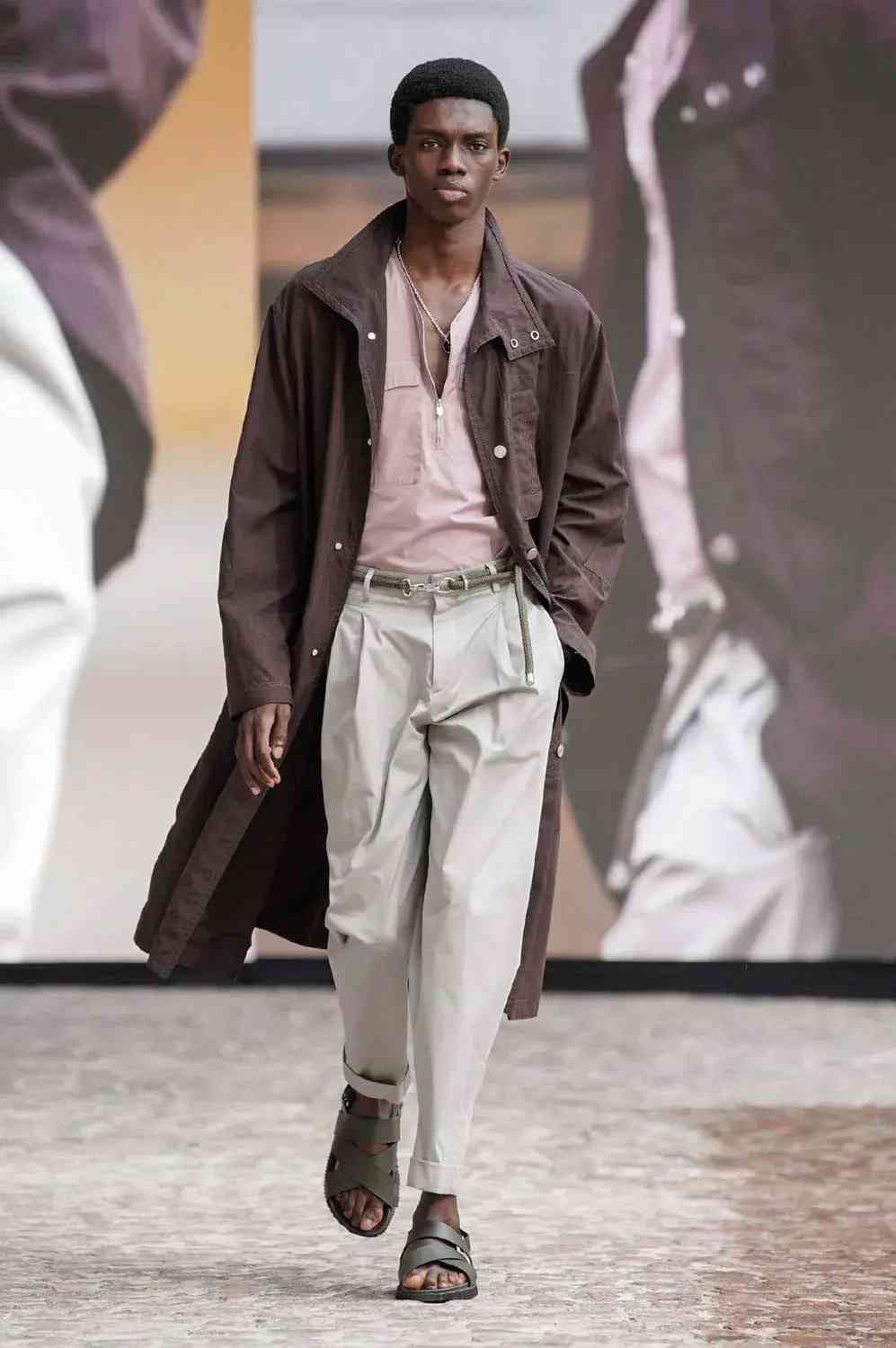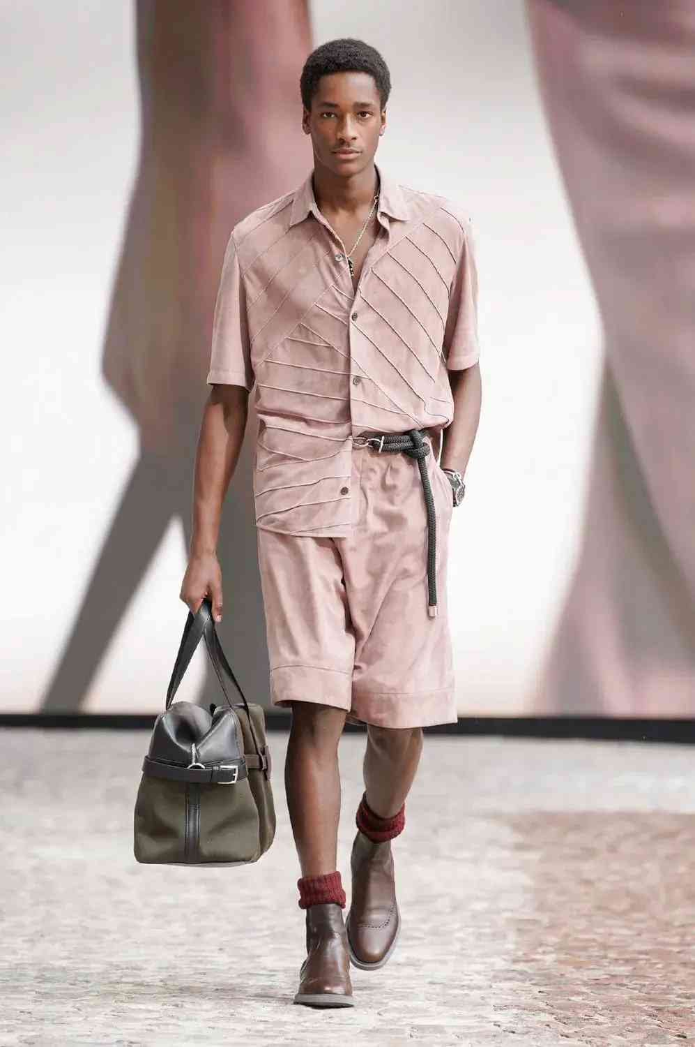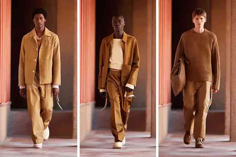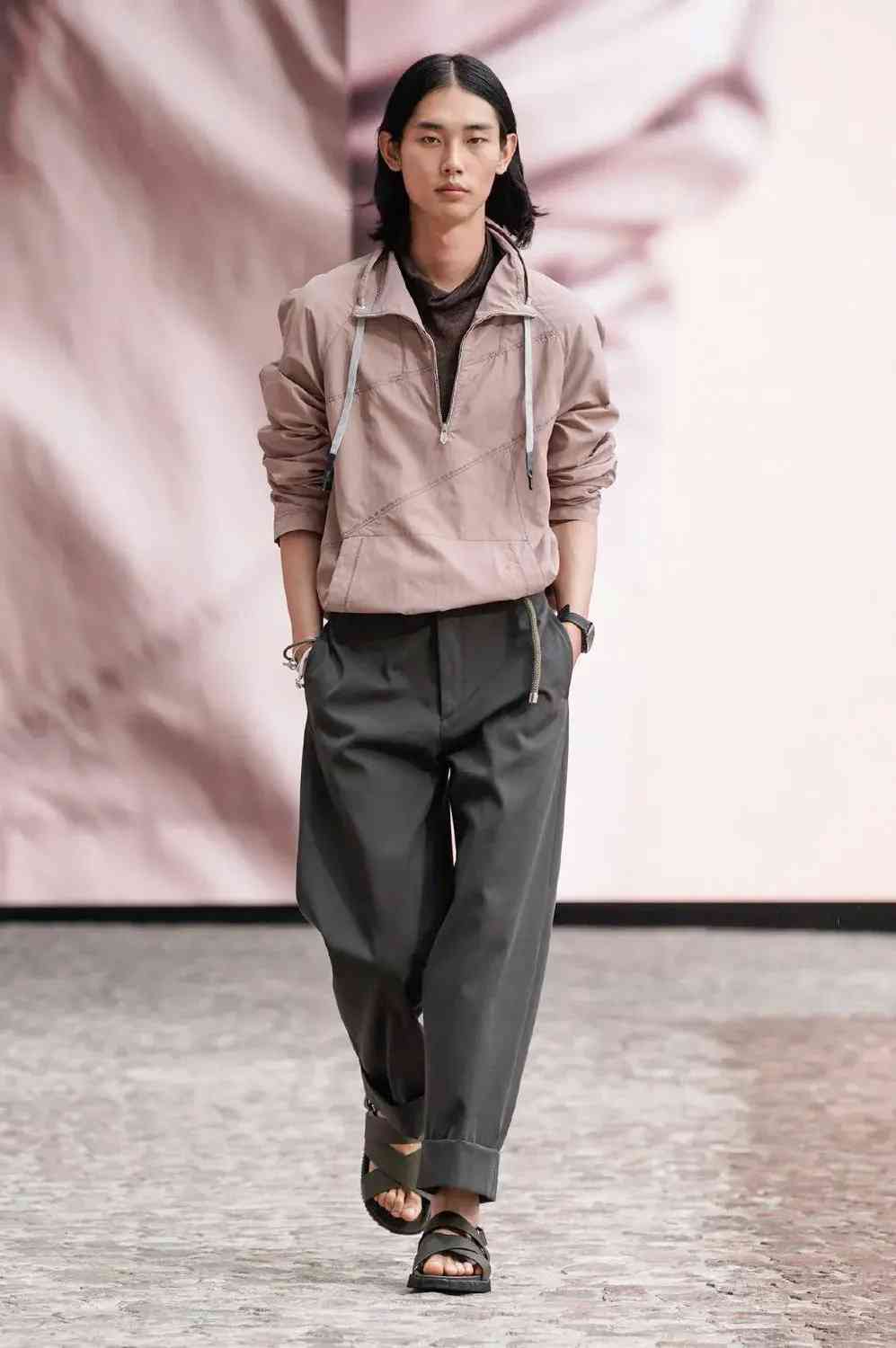 Zegna 的这个系列以“THE (NEW)SET”(新生)为主题,延续了近几年转型后的年轻风格,设计中融入了街头、工装的元素,整个系列以清新柔和的色调呈现,充满活力。