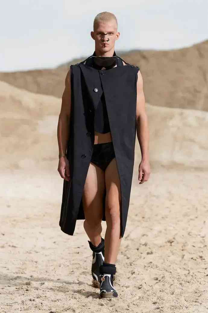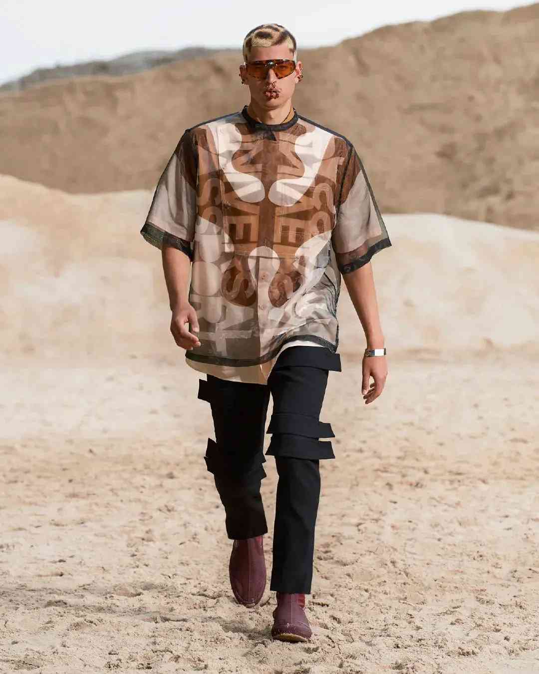 本季BURBERRY2022春夏男装发布在巴黎时装周举办。整场发布会是在户外的沙地上完成拍摄的,拍摄地点与其位于的 Millennium Mills 的极简主义和城市结构形成鲜明对比。