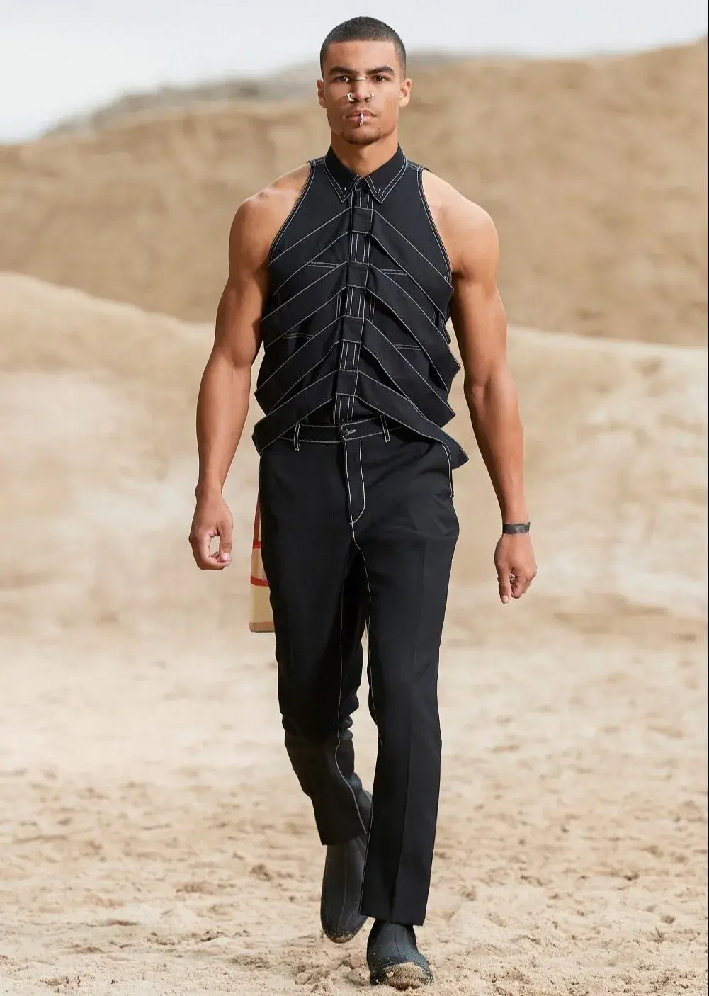 整个系列旨在唤醒人们内心的勇士精神,无袖设计和解构风格的外套充当着系列的主要产品角色,标志性的 BURBERRY 风衣也被加载了火星元素。另外,在裤子、上衣和背心上都辅以一系列皮革和棉质带子,进一步增强了战士风格的设计。