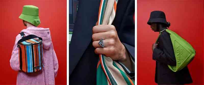 Prada 这几季在努力开发三角徽标,这一季从三角徽标戒指、配有三角造型口袋的渔夫帽到大尺寸的三角造型手袋,直接刺激你的购买欲。
