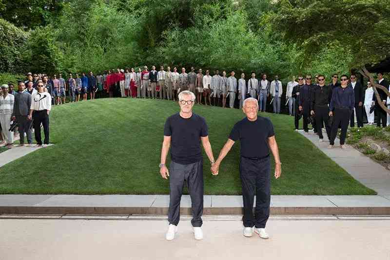 Giorgio Armani 是这一季少有的举行带观众实体秀的品牌。地点选在了米兰 Borgonuovo 大道 21 号的品牌原总部,秀场巧妙地将室内和室外花园进行了结合,只看视频的话大家可能以为绿地背景是静态的照片,直到最后模特集体谢幕时才会发现其中的玄机。