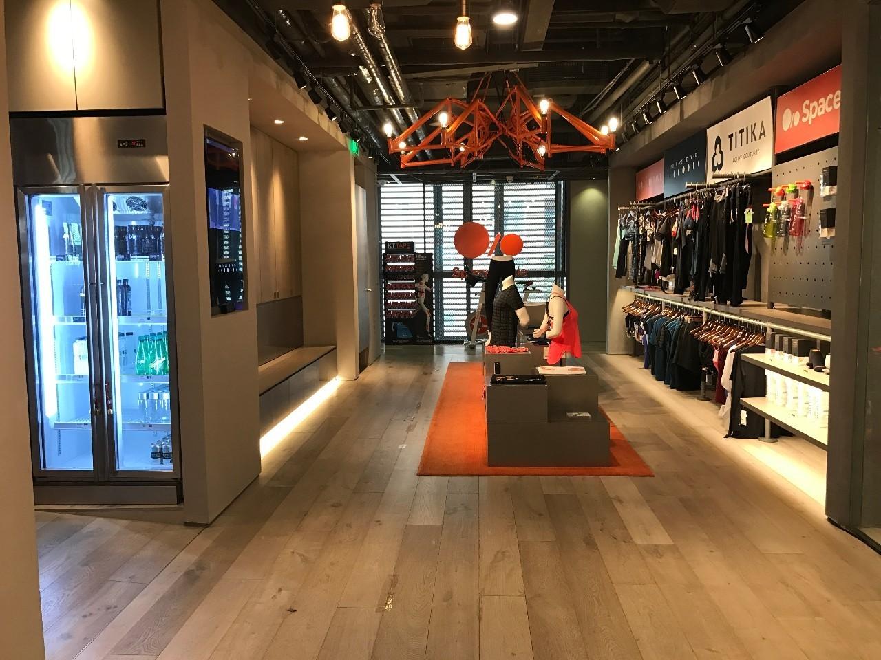 来自加拿大的瑜伽服饰品牌Lululemon,除了销售产品,还经常组织瑜伽等丰富的运动课程。去年12月底,品牌在北区的下沉广场开出北京家门店,233㎡的规模也是目前国内最大的一家。
