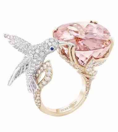 摩根石 ,又名桃色绿柱石,它的英文名是Morganite 。摩根石是粉色至香槟色的绿柱石,和祖母绿、海蓝宝石同族,常被人称作“粉色祖母绿”、“粉色海蓝宝”,但其在中国的知名度远不及前两者。更多人对于摩根石可能有种“处在深闺无人识”的感觉,常被比喻成绿柱石家族的“闺女”。因同时含有铯和铷元素,让摩根石的比重和折射率都高于普通的绿柱石。