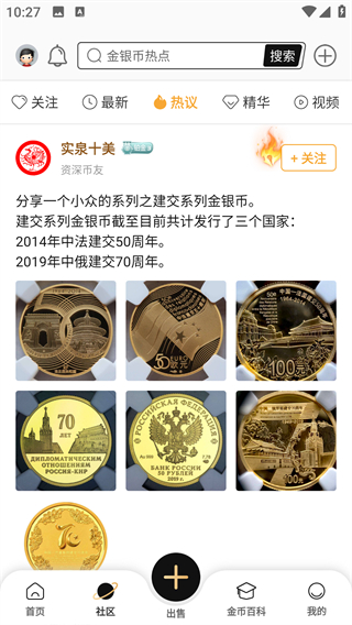 1、社区页面上方点击感兴趣的标签,切换至对应内容板块,可查看金银币相关的优质分享、市场动态等内容。