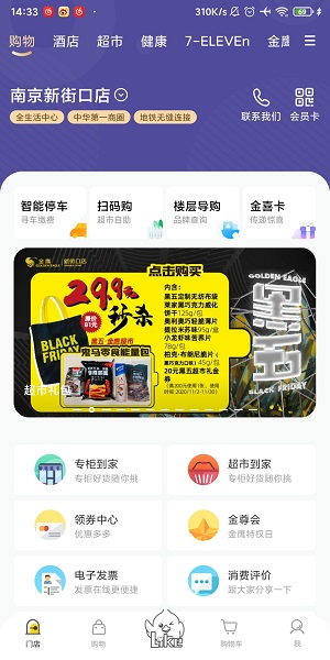 5、在应用首页显著位置设置扫码功能,可快速扫描线下展示商品二维码直达购买页面,极大简化了从看到商品到完成下单的流程。