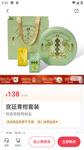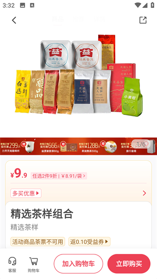 3、在热销商品列表中选择目标茶叶商品并点击,打开商品的详情页面,查看产品信息、价格及优惠活动。