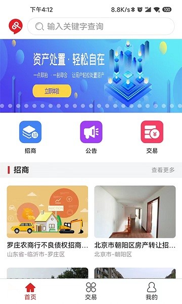 2、在首页点击底部【交易】按钮,进入交易板块查看相关资产信息。