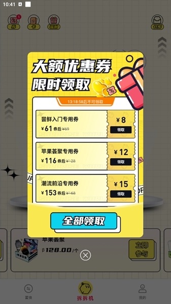 5、对海量盲盒商品进行细致分类便于查找,移动端购买价格极具竞争力,并可结合优惠券实现更优折扣,收货更划算。