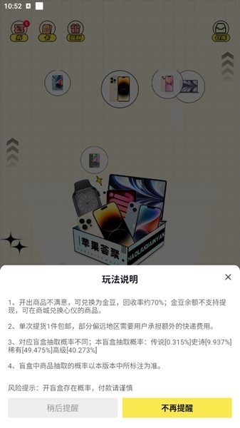 4、参与抽盒可获得金豆积分,积累的金豆可在兑换区直接换取指定商品或权益,增加获取心仪好物的额外途径。