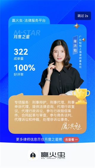 1、智能律师匹配算法综合考虑专业领域、胜诉率、地域熟悉度等十五项指标,推荐最适合案件特点的代理律师。