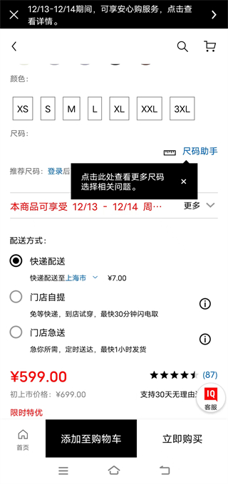 2、贴心的尺码推荐系统和搭配建议,帮助用户选购适合自己的服饰风格。减少不合身带来的退换麻烦。