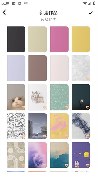 2、新建作品页面填写作品名、选择封面样式后,点击右上角确认按钮,完成作品的创建,进入作品管理界面。