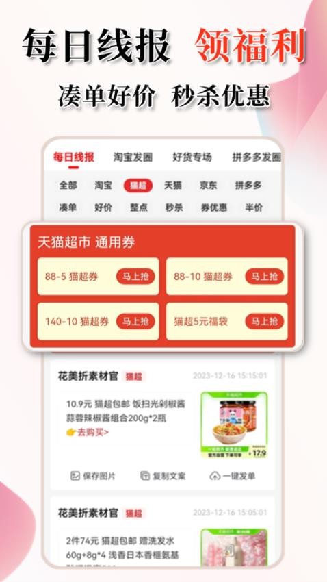 2、每日实时更新海量折扣与返利活动,同步推送潮流新品与精选好物,不错过任何省钱良机。