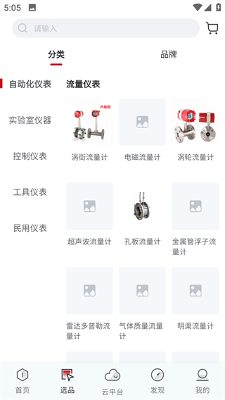 1、进入首页后,选择精选商城,进入商品分类页面,这里涵盖各类仪器、仪表等产品,可按需查找所需商品。