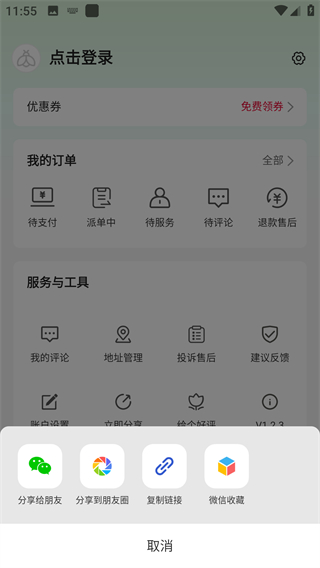 2、在个人中心页面,可看到订单、服务工具等功能,点击右上角的设置图标,打开软件的设置界面。