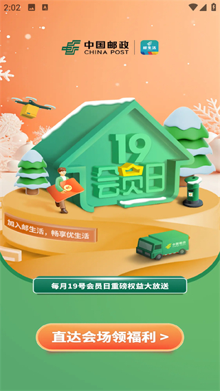 1、整合邮政系统全国网点资源,会员可享受线下自提、包裹代收等实体网点专属服务。