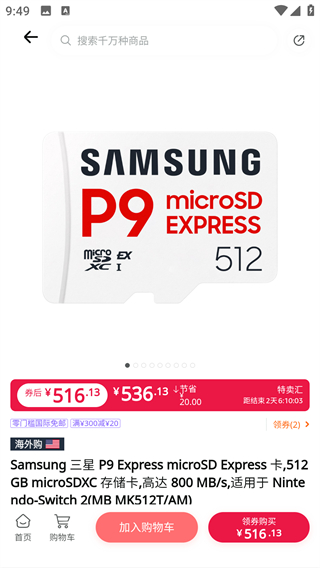 2、商品详情页展示价格、优惠等信息,启用加入购物车功能,可进入商品规格选择界面,确认购买参数。